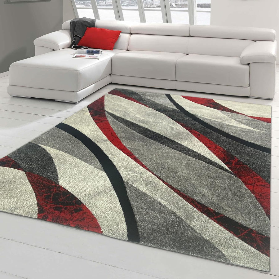 Modern-Abstrakter Konturenschnitt Wellendesign Teppich | pflegeleicht | rot grau Grösse 120x170 cm 1