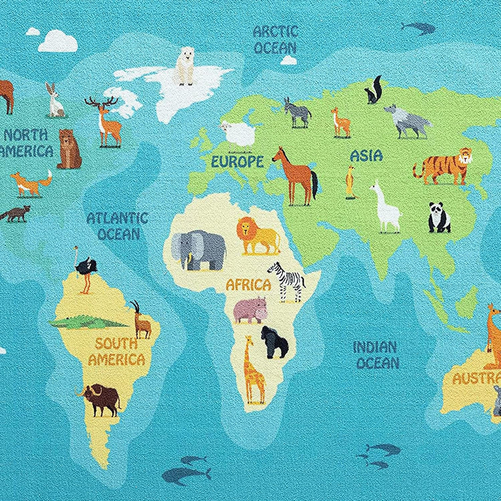 Teppich-Traum Kinderzimmerteppich Weltkarten-Lernspiel Kontinente Tiere & Meere in blau grün, Läufer