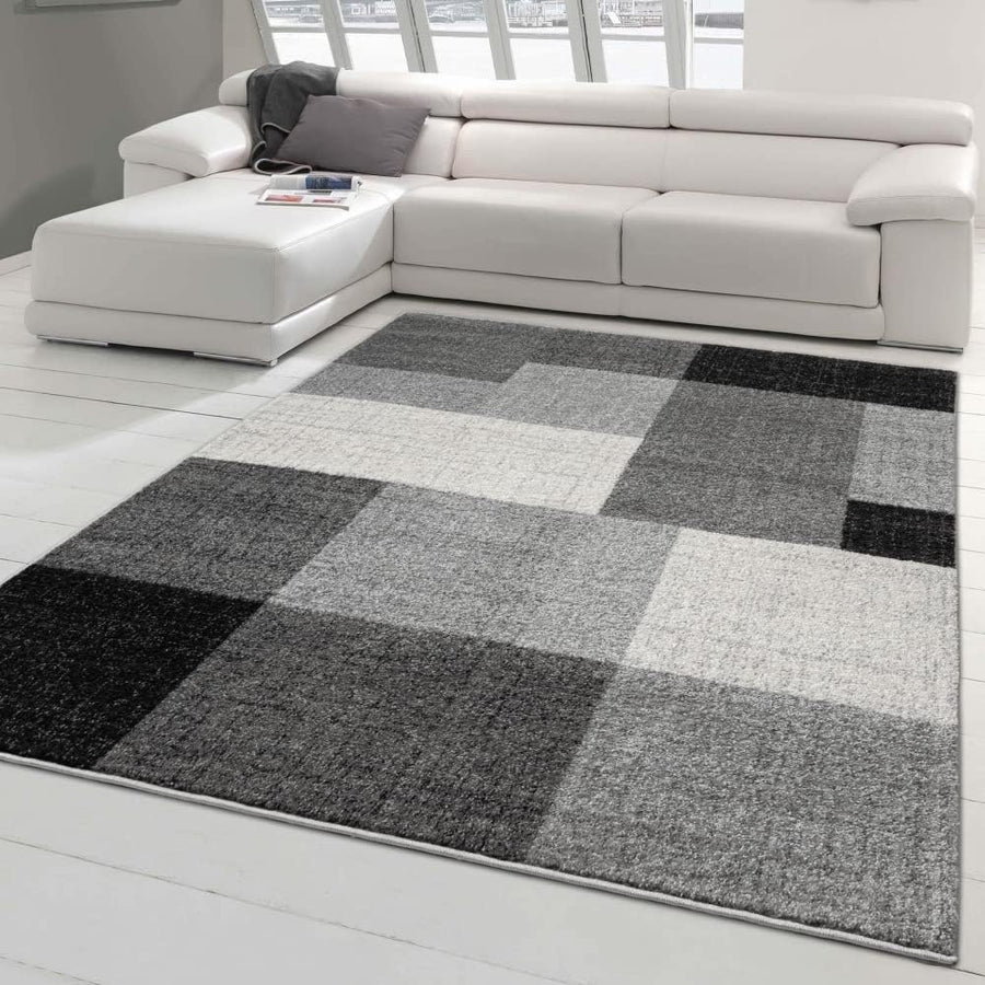 Grosser Teppich für Wohnzimmer | dezente Quadrate | Creme grau, Grösse 240x330 cm 240x330 cm Creme G