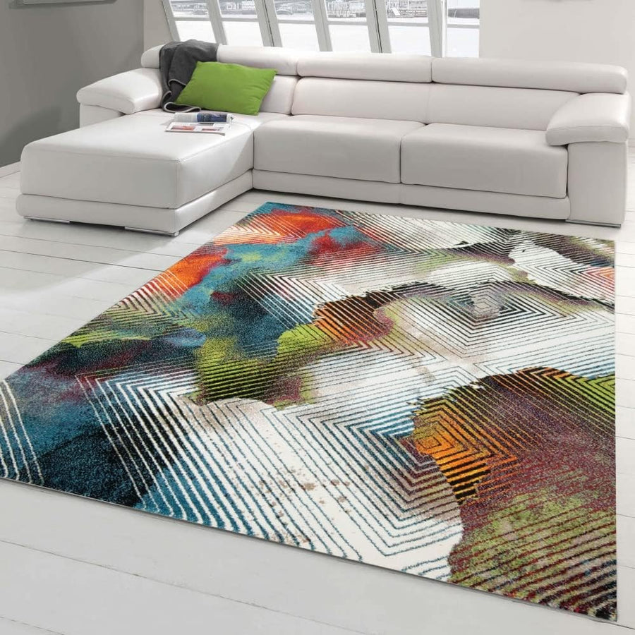 Modern-Abstrakter Gästezimmer Teppich in bunten Farben | strapazierfähig | orange rot grün, Grösse 2