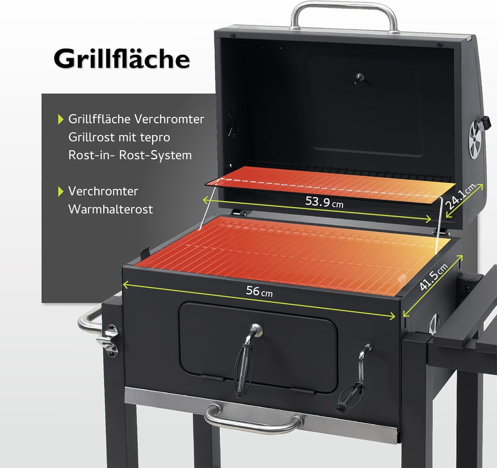 tepro Holzkohlegrill Grillwagen Toronto Click, Grillfläche: ca. 56 x 41,5 cm,