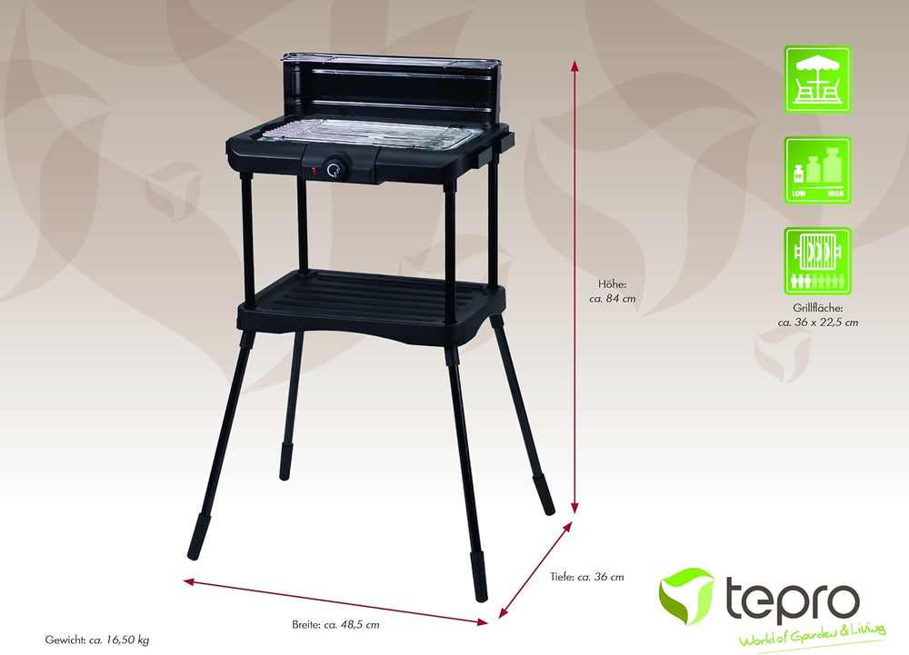 tepro Elektrogrill Albertville – Standgrill mit 1800–2000 W, abnehmbarem Heizelement, verchromtem Gr