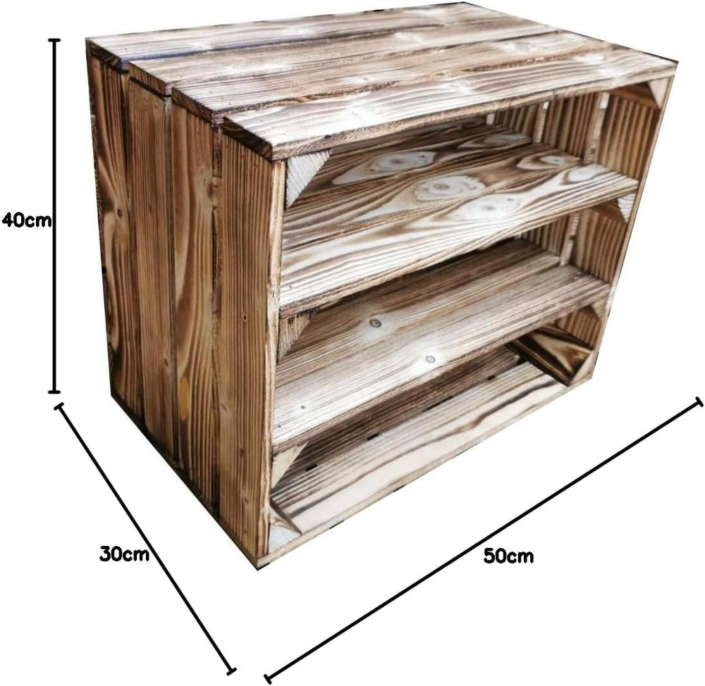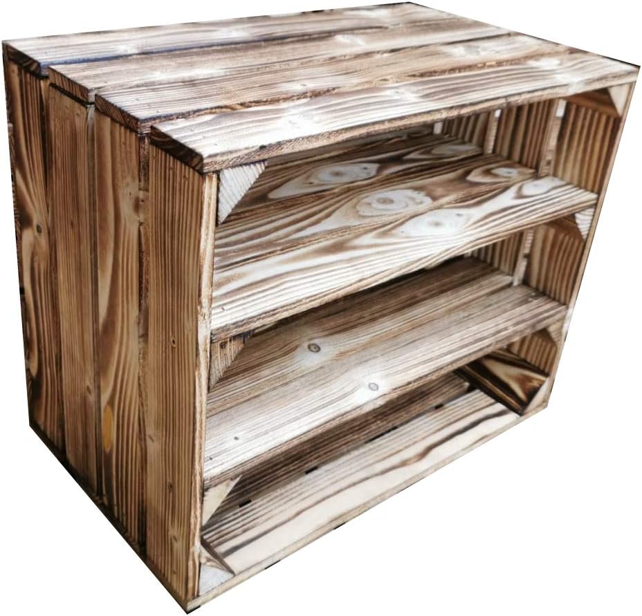 Teramico Massive Holzkisten als Schuhregal/Bücherregal LEICHT GEFLAMMT mit Zwischenbrett (verschraub