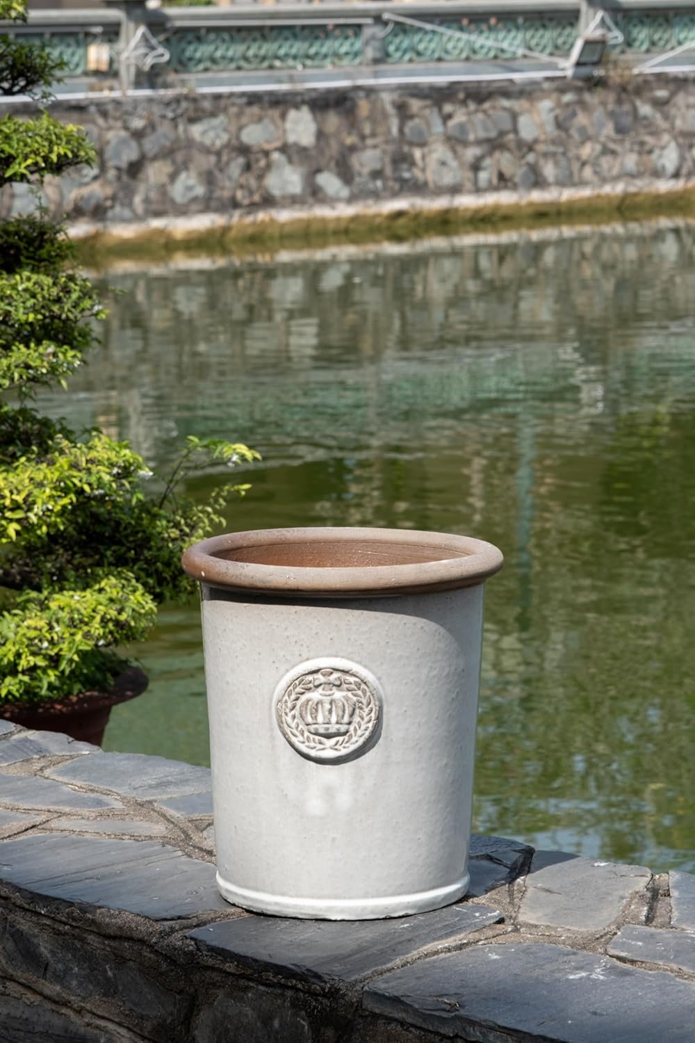 Pflanzgefäss Blumentopf Übertopf Krone Steinzeug glasiert Weiss Grau Türkis 34cm 45cm absolut Frostf