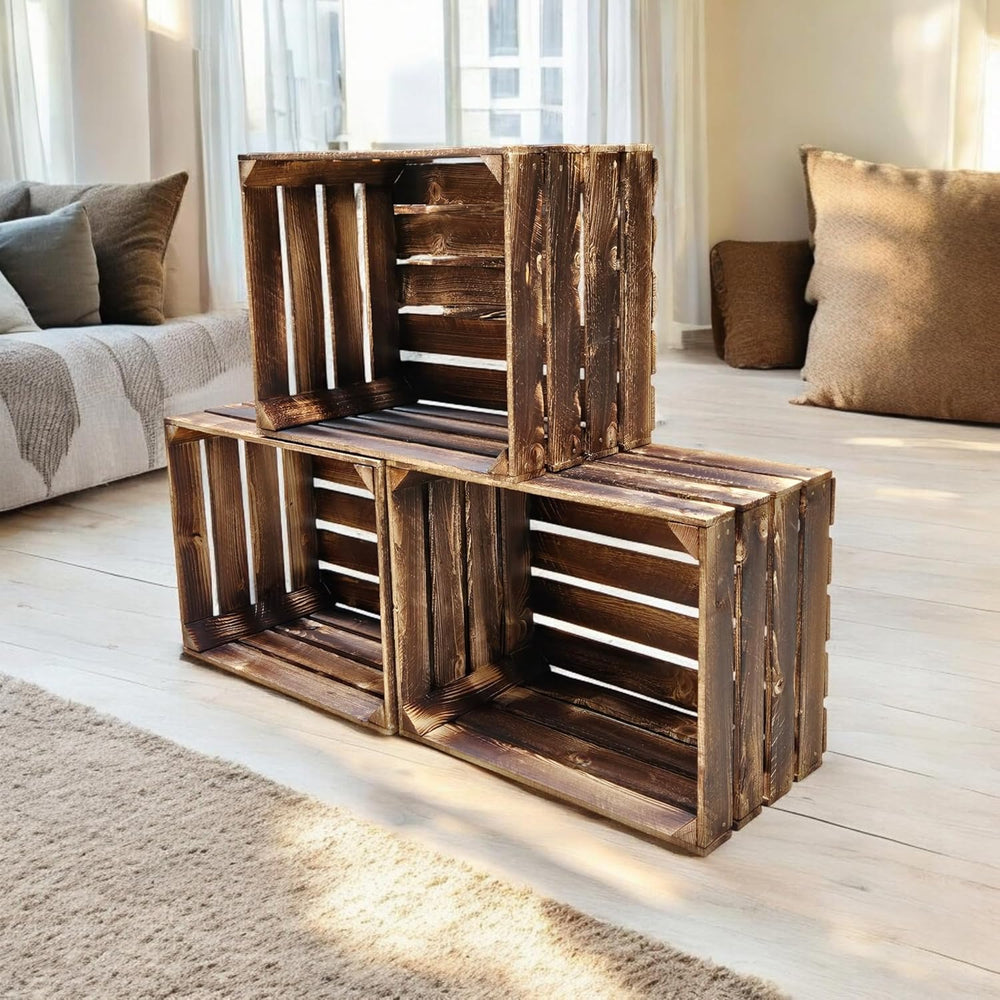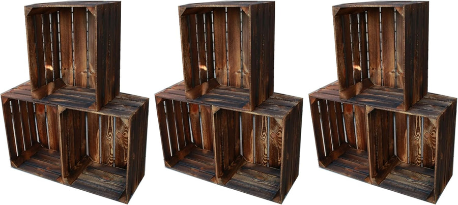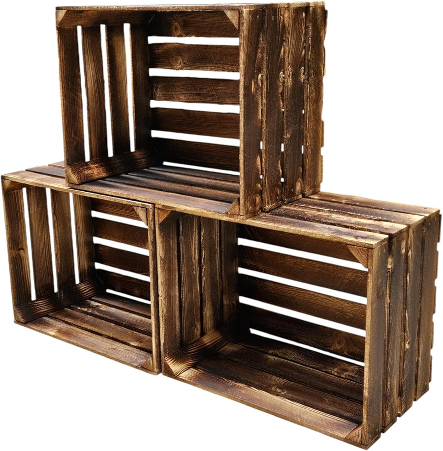 Teramico Holzkisten Obstkisten Weinkisten geflammt dunkel 50 x 40 x 30cm in tollen Set-Angeboten als