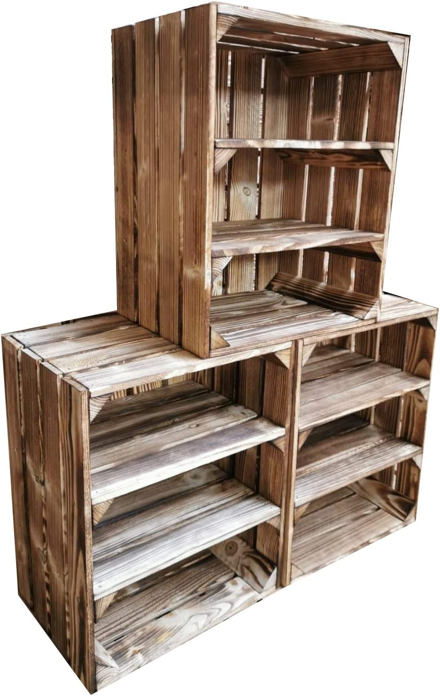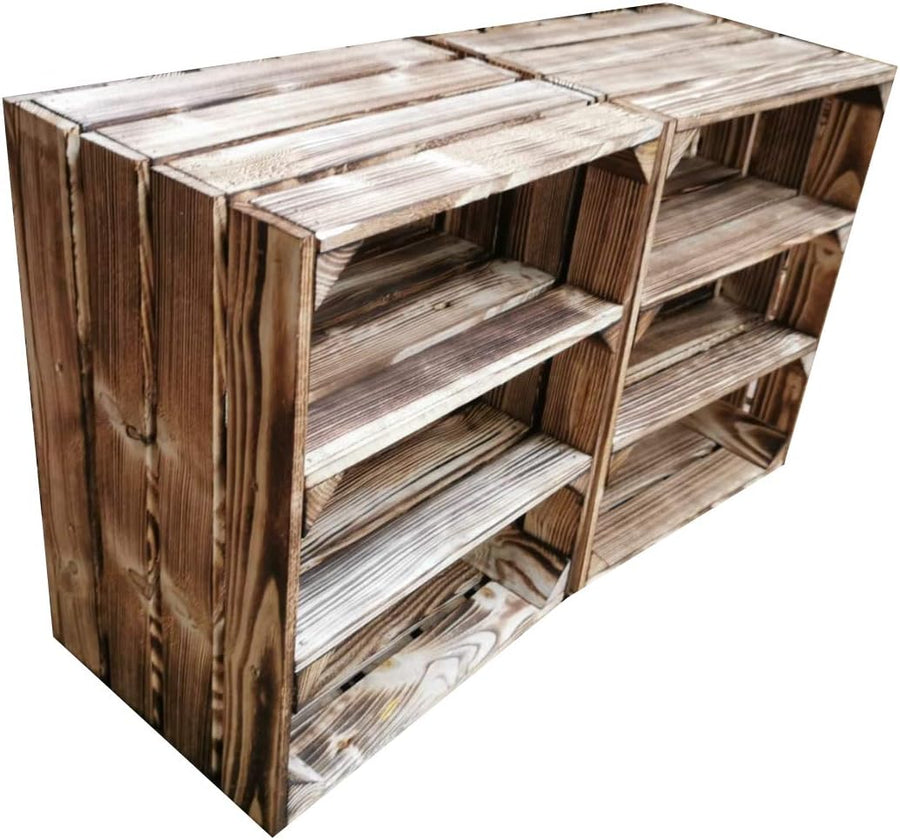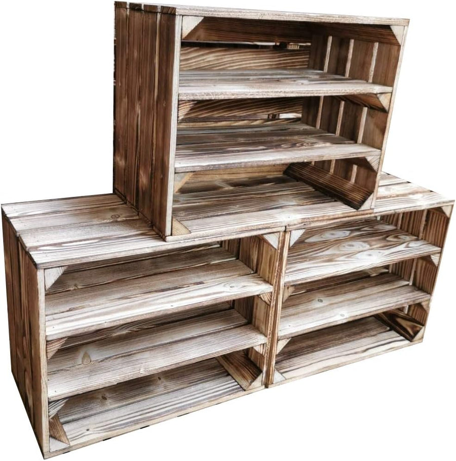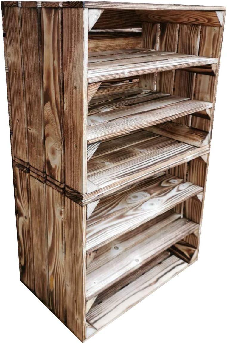 Massive Holzkisten Schuhregal Bücherregal GEFLAMMT Zwischenbrett Apfelkisten Obstkisten Weinkisten K