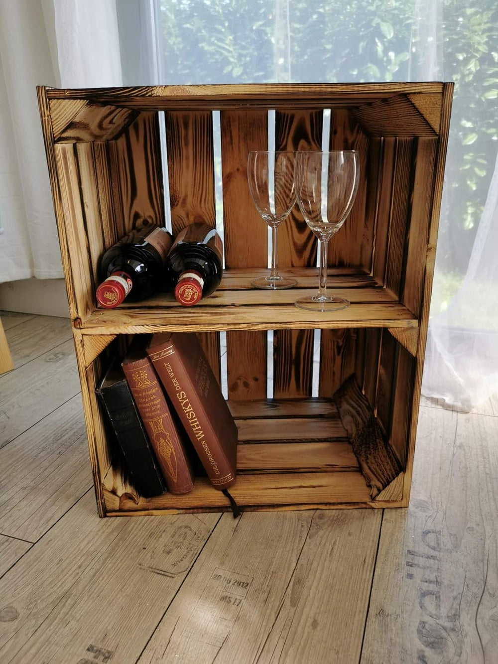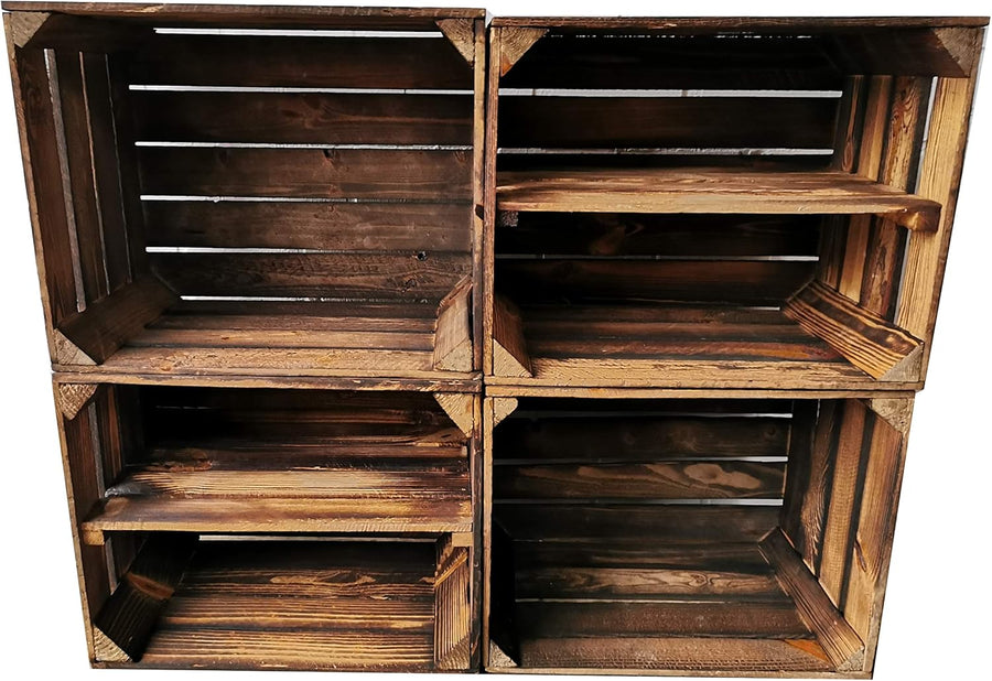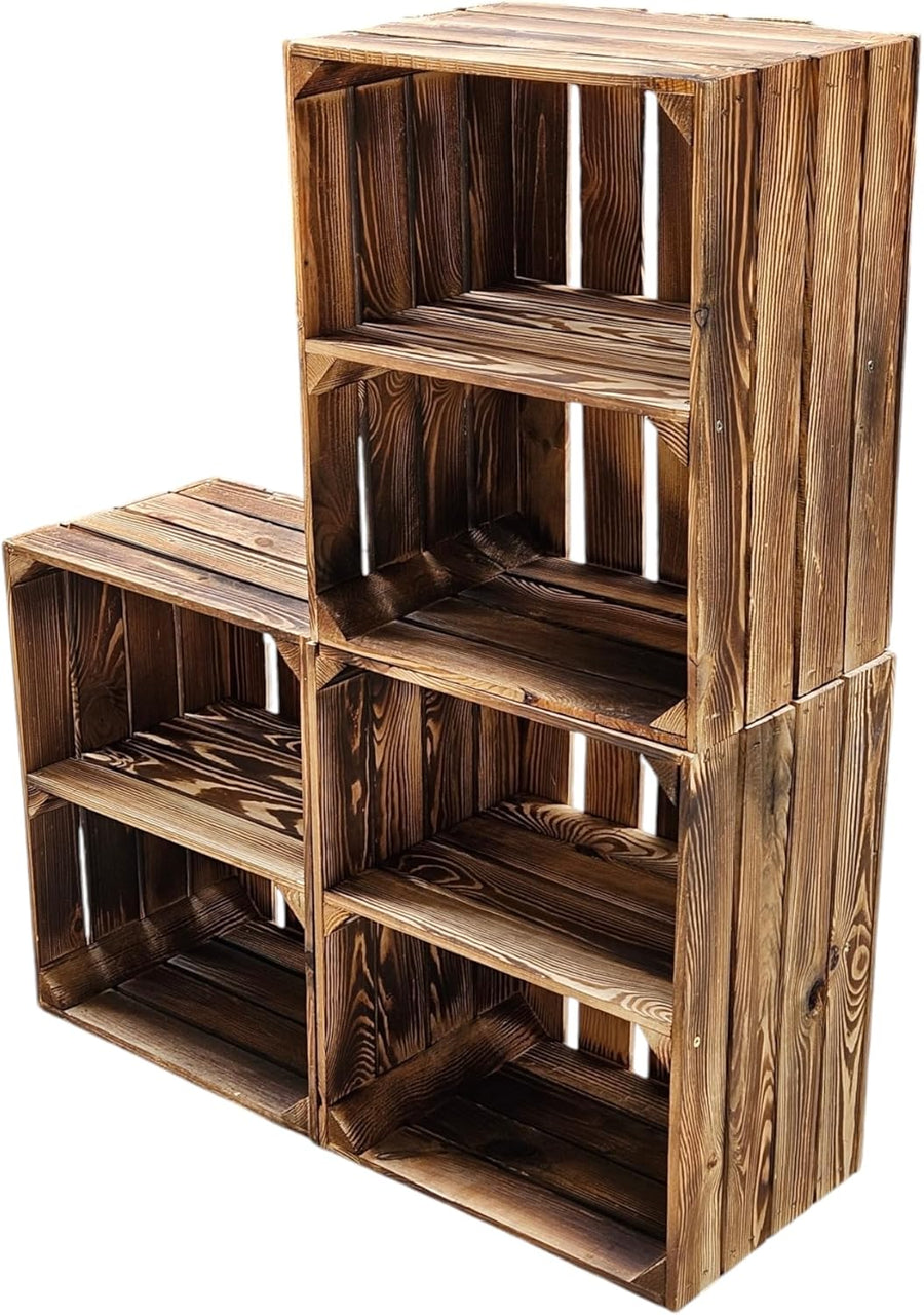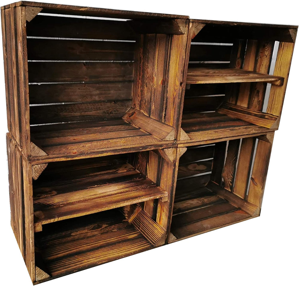 Massive Holzkisten Schuhregal Bücherregal GEFLAMMT Zwischenbrett Apfelkisten Obstkisten Weinkisten K