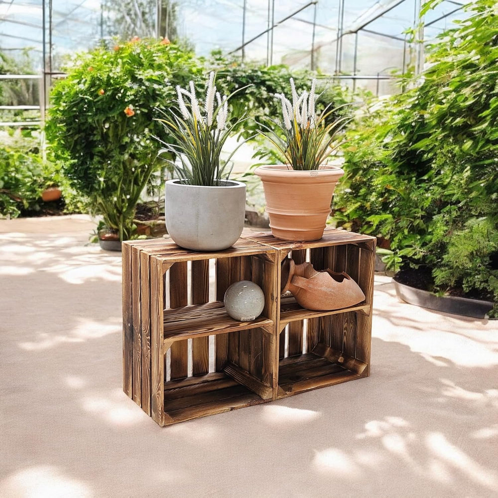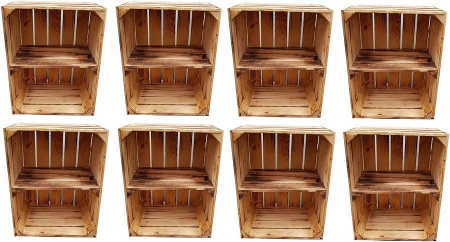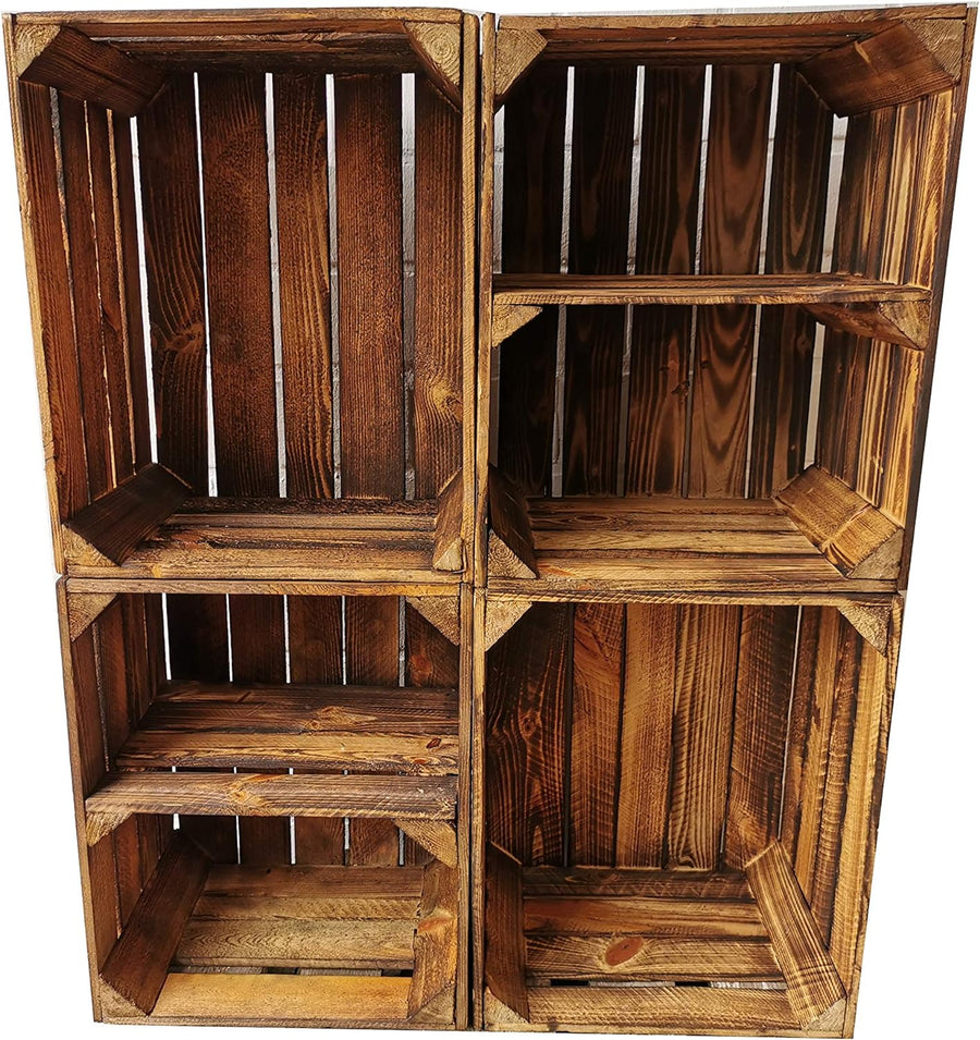 Teramico Alte geflammte Obstkisten / Holzkisten mit Zwischenboden LANG verarbeitet - Ideal für den M