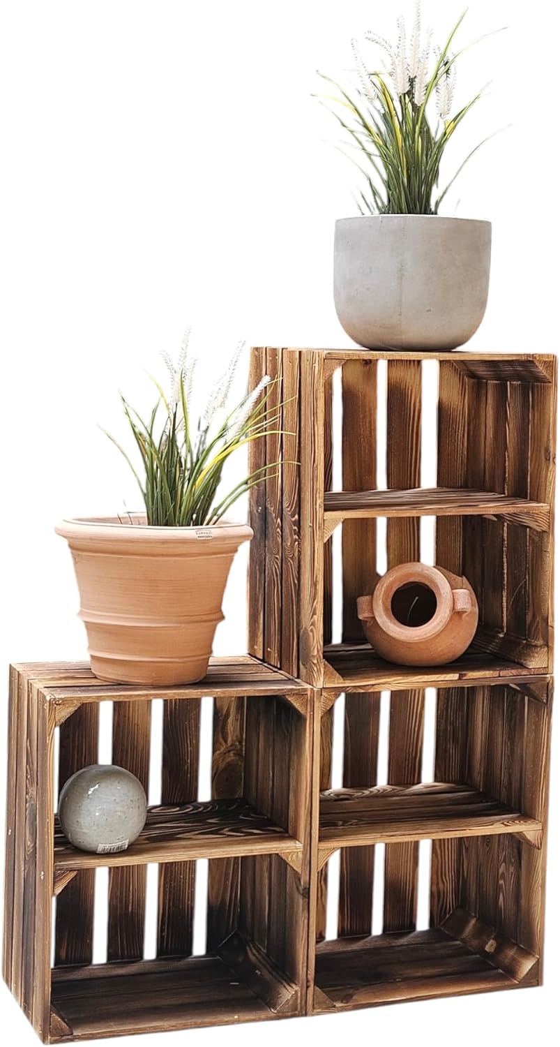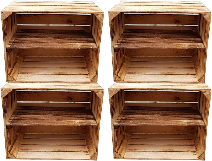 Teramico Flambierte Holzkisten als Bücherregal/Regalkisten 50 x 40 x 30cm mit Ablagefach/Mittelbrett