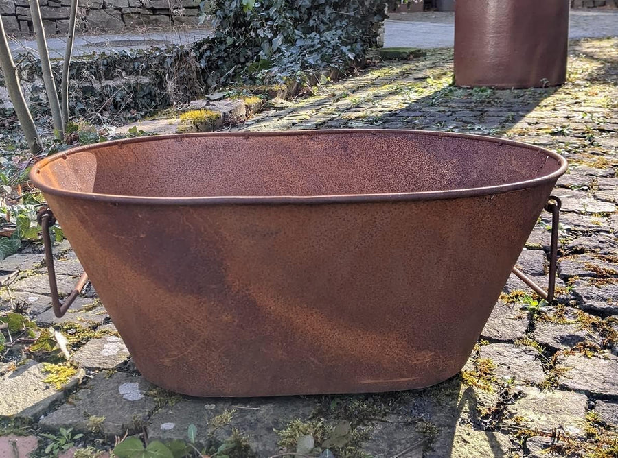 Pflanzwanne / Pflanztrog mit 2 Henkeln ca. 34 cm breit aus Metall Edelrost Rost Garten Pflanzgefäss
