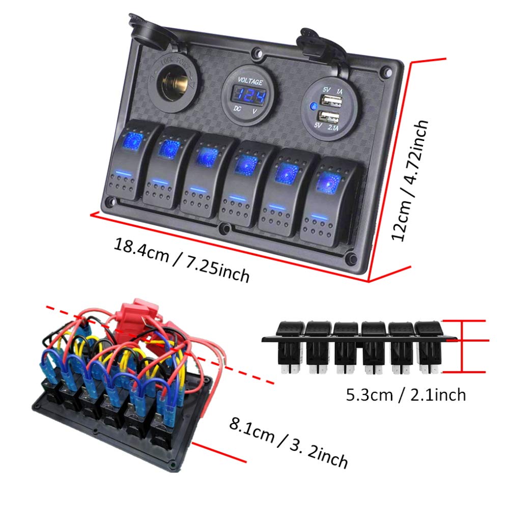 Thlevel wasserdichte 6 Gang Schalter Panel Rocker Schalttafel, 12V/24V Digitaler Spannungsmesser, Do