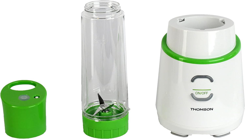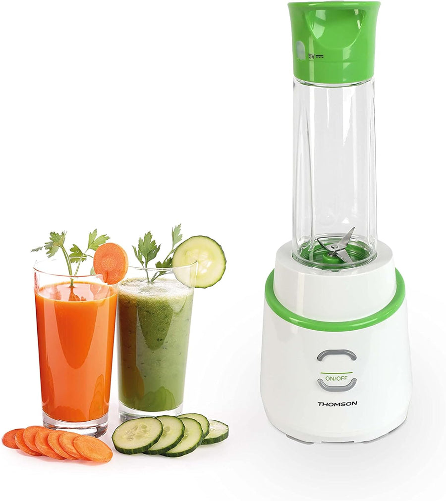 THOMSON Vakuum-Mixer 4 Klingen, sternförmige Klingen, Smoothie Mixer mit 600 ml 2 in 1 Flasche, Smoo