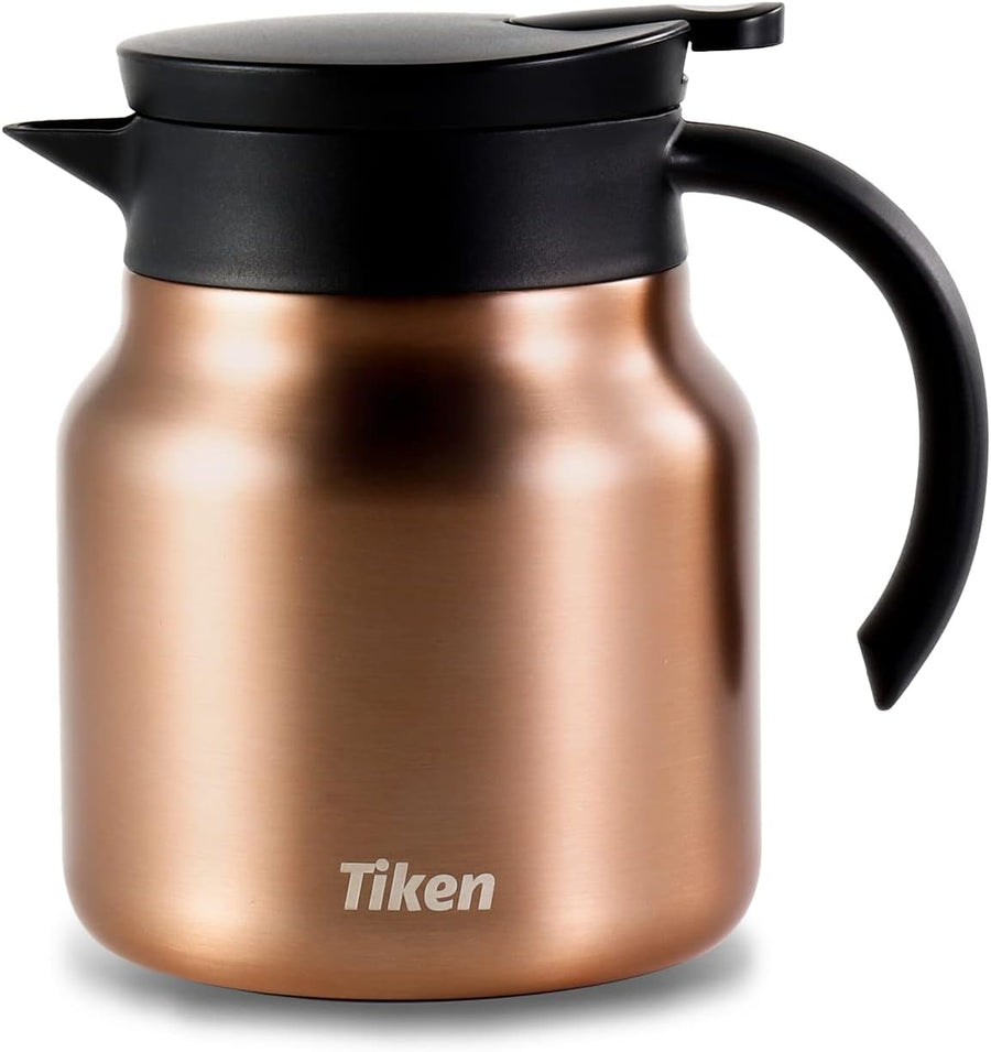 Tiken 1L Thermoskanne aus Doppelwandingem Edelstahl Isolierkanne Kaffeekanne mit Quick Tip Verschlus