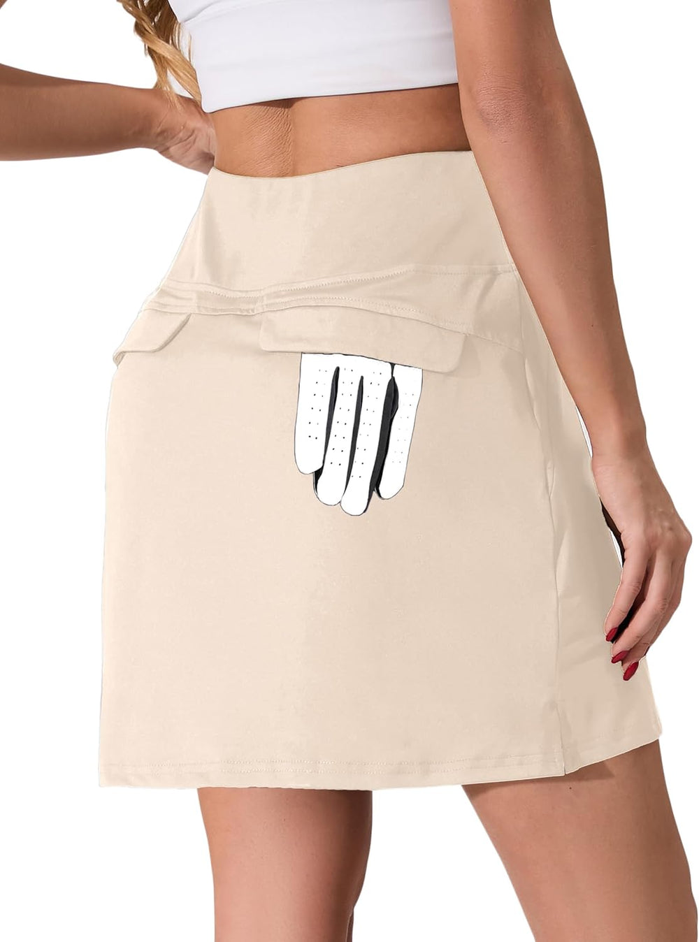 Timuspo Damen Tennisrock mit Hose Kurze Hosenrock mit Taschen Sommer Sports Skort für Golf Wandern L