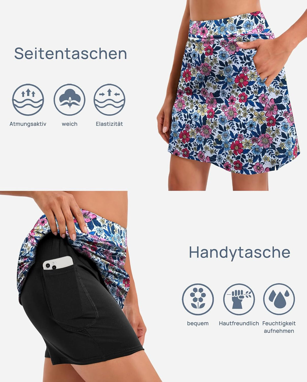 Timuspo Rock Damen Sommer Tennisröcke mit Hose Drunter Hohe Taille Activewear Skort Sportrock Golfro