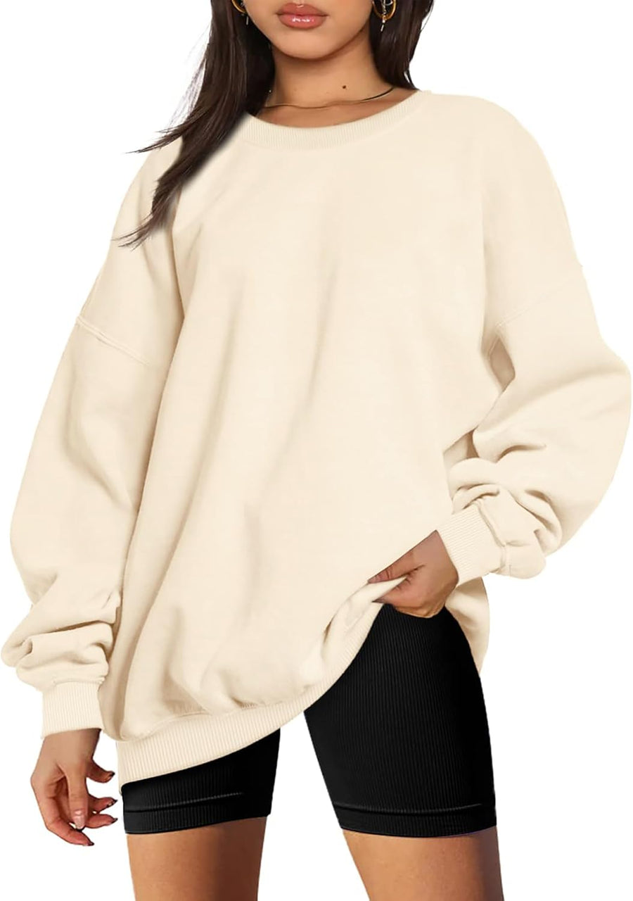 Timuspo Pullover Damen Oversize Langarm Fleece Rundhalsausschnitt Sweatshirt Herbst Winter Frauen Mä