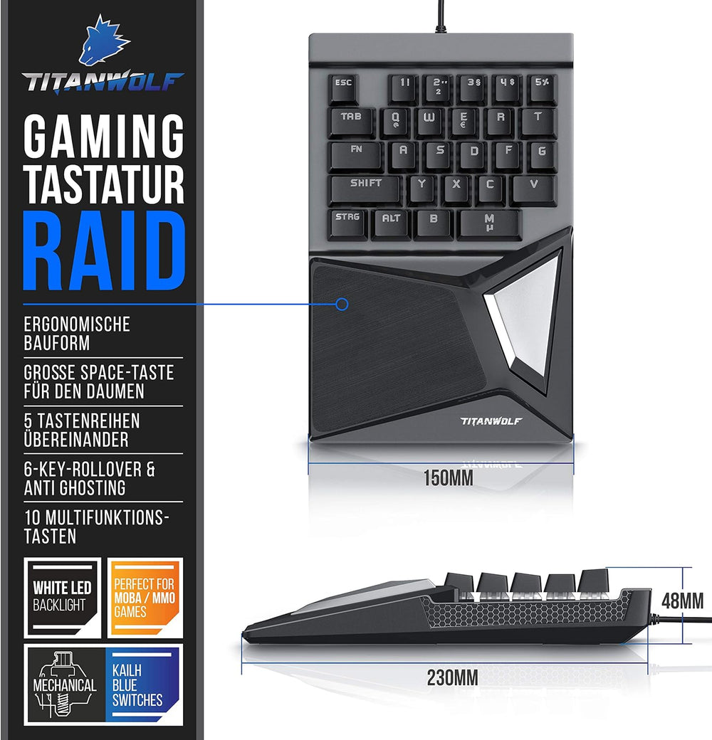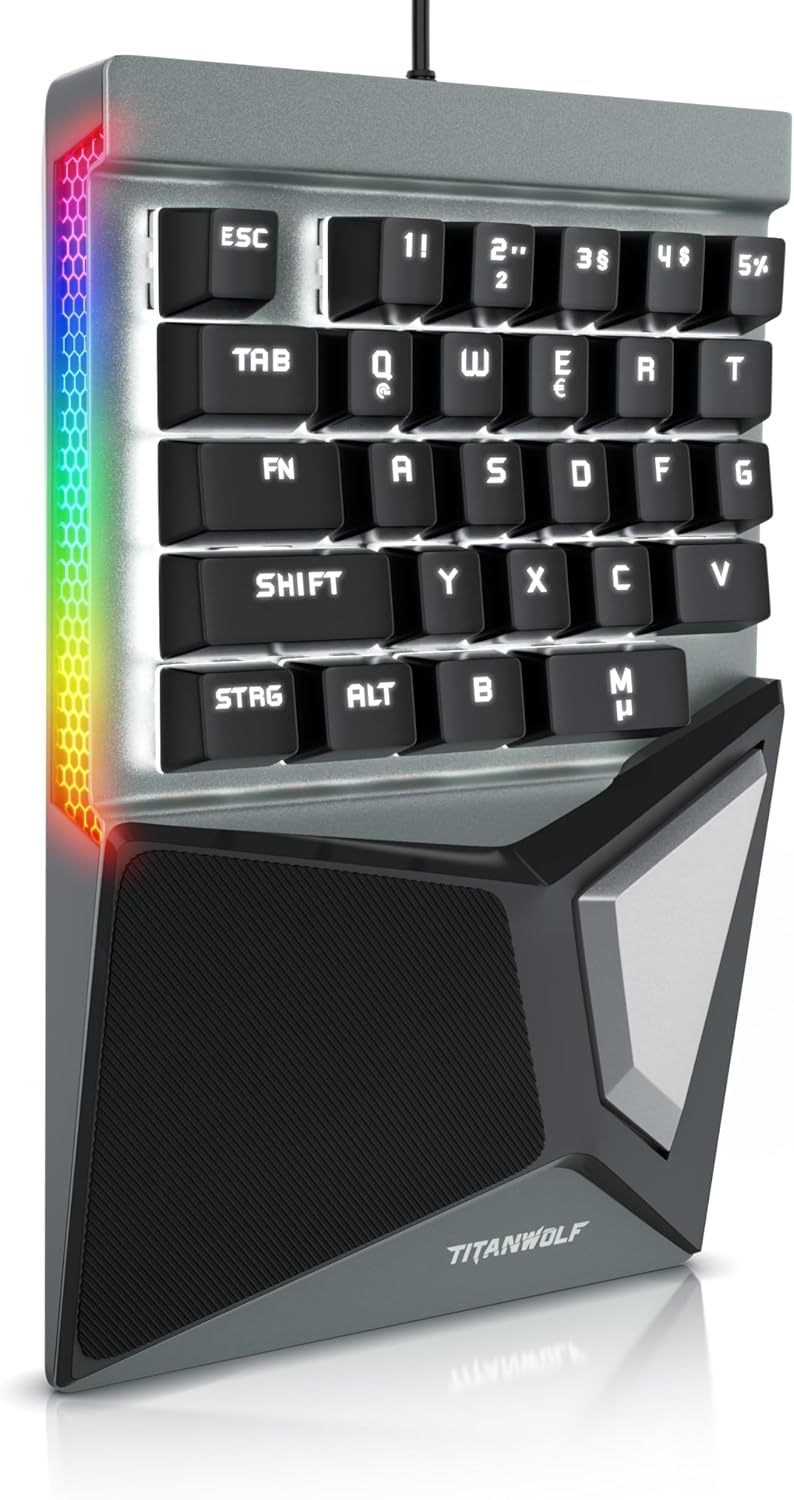 Titanwolf Einhand Gaming Tastatur, Gaming Keypad Ziffernblock, mechanische Einhand Tastatur kabelgeb