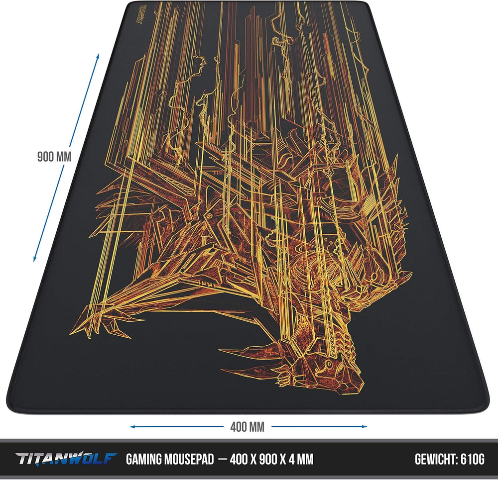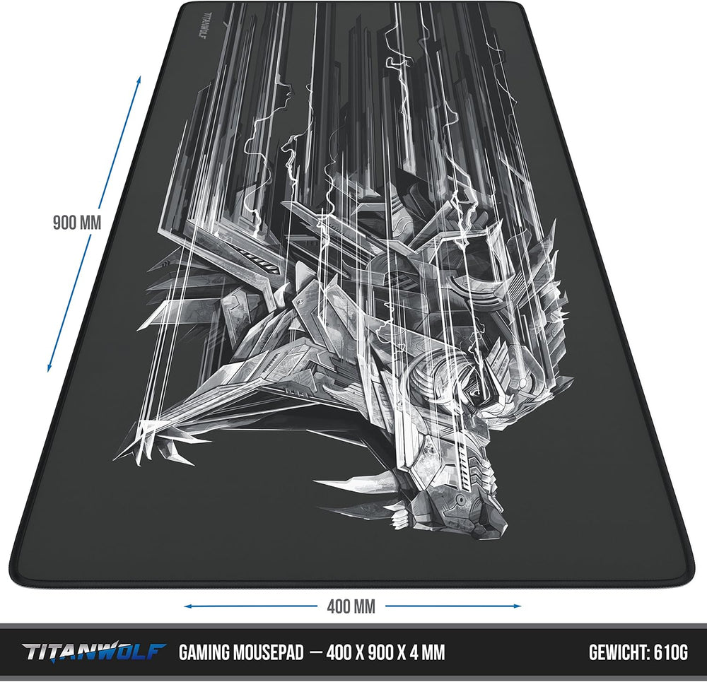 Titanwolf XXL Speed Gaming Mauspad - 900x400 x 4mm - XXL Mousepad - Tischunterlage Motiv - verbesser