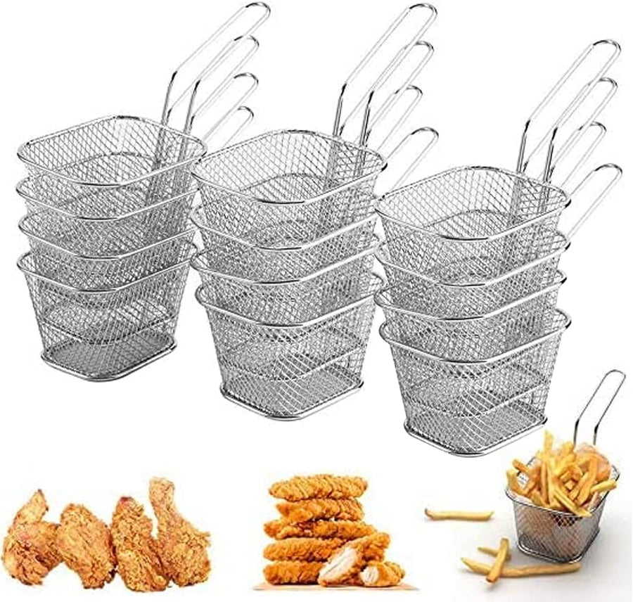TOKINCEN 12 Stück Frittierkorb Klein Servierkörbchen Edelstahl für Pommes Mini Pommes Körbchen Pomme