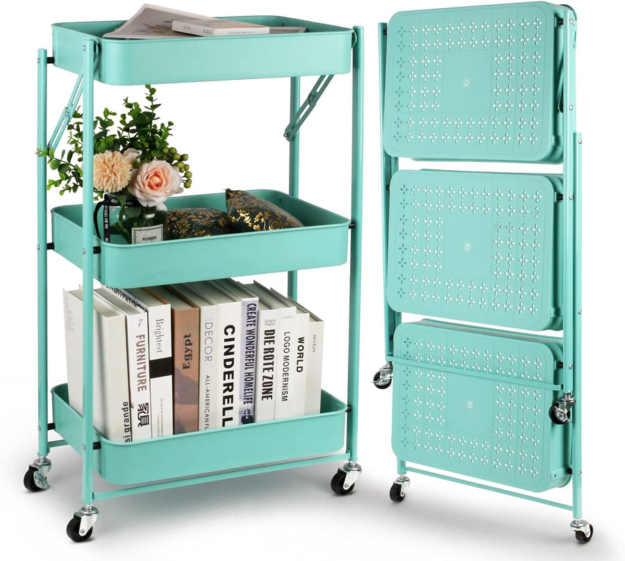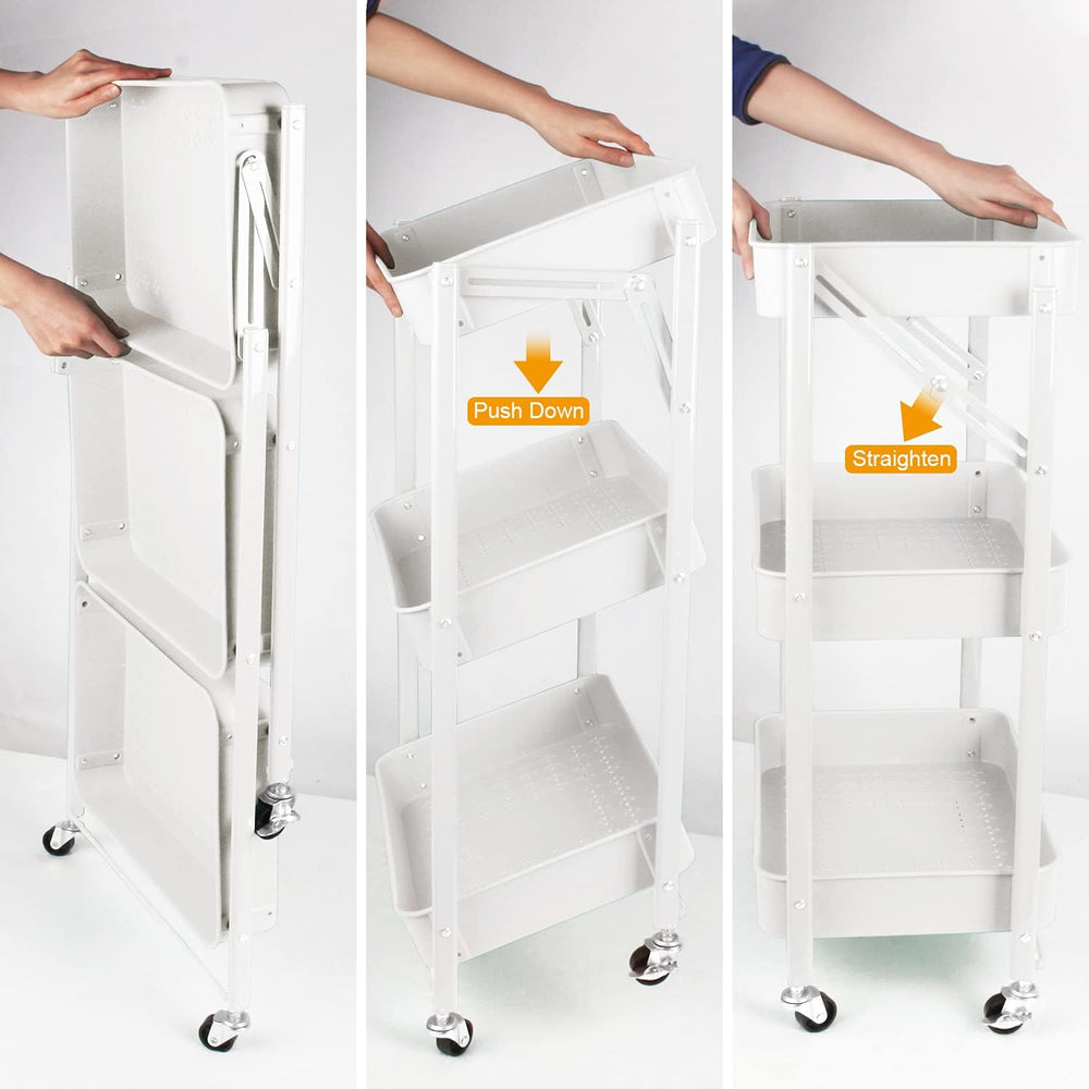 Todeco Klappbarer Rollwagen mit 3 Ebenen, Servierwagen, Küchenwagen aus Metall und Kunststoff, Keine