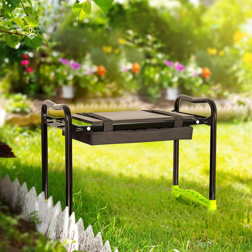 Todeco Gartenhocker Kniebank mit 2 Arten von Kissen und Gartenwerkzeug Tasche, Gartenhelfer Kniehilf