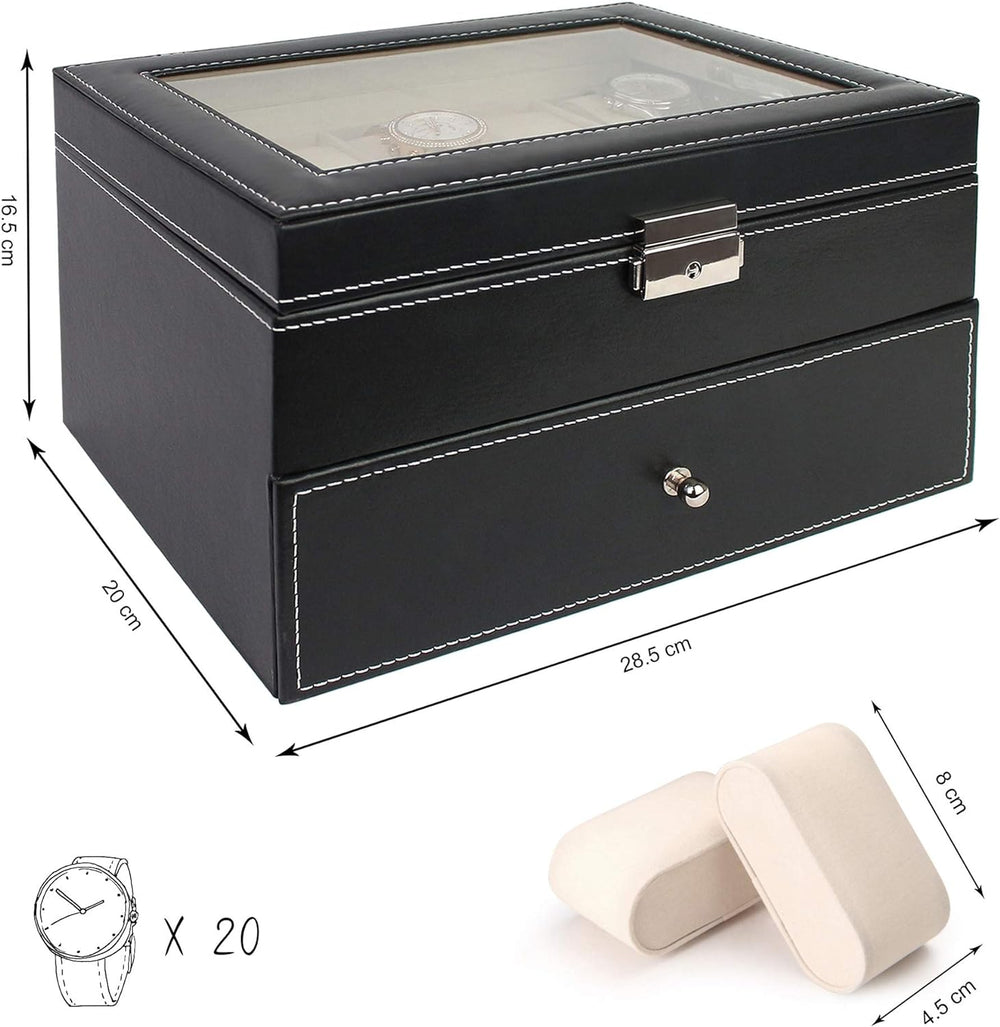 Todeco - Uhrbox, Uhr und Armband Aufbewahrung - Material der Box: MDF - Kissenmaterial: Samt - 20 Uh