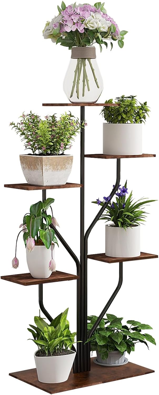 Todeco Pflanzenregal indoor, 6 Etagen Pflanzenständer aus Metall, Mehrstöckig Blumenständer für Indo