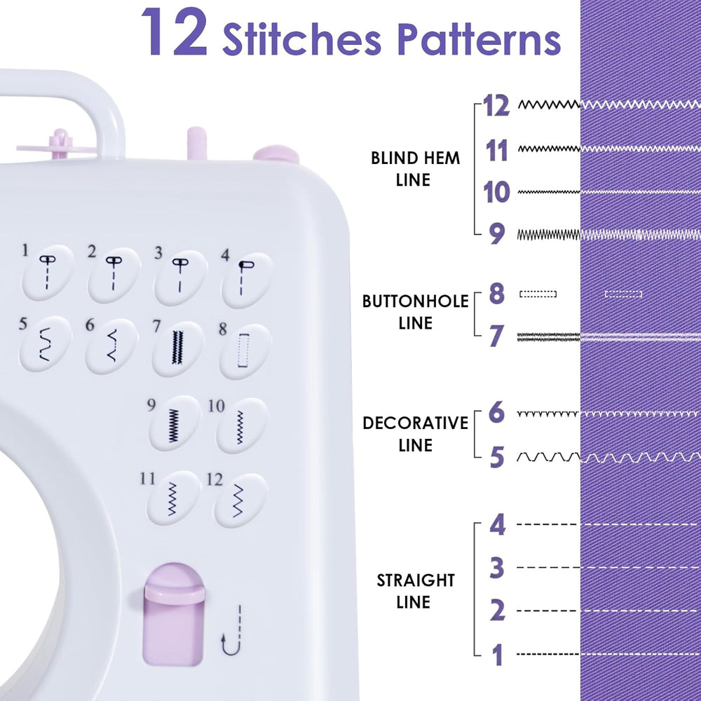 Todeco Nähmaschine für Anfänger und Kinder, 12 Stichmuster, Nähmaschine Klein mit Fusspedal Nählicht