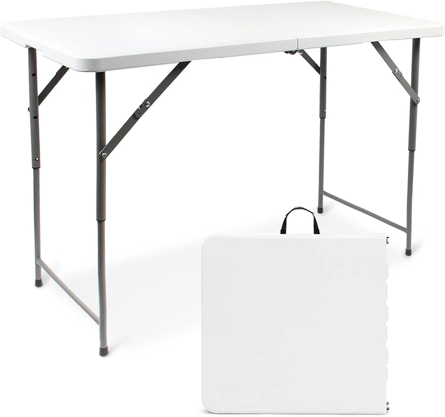 Todeco Campingtisch höhenverstellbar, Gartentisch rechteckig mit Tragegriff, Partytisch 120x60x76cm,