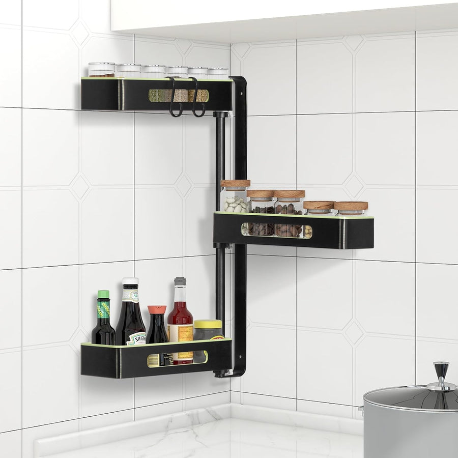 Todeco 3 Etagen Gewürzregal, 180° drehbar, Höhenverstellbar, Gewürzregal Wand Ohne Bohren, für Küche