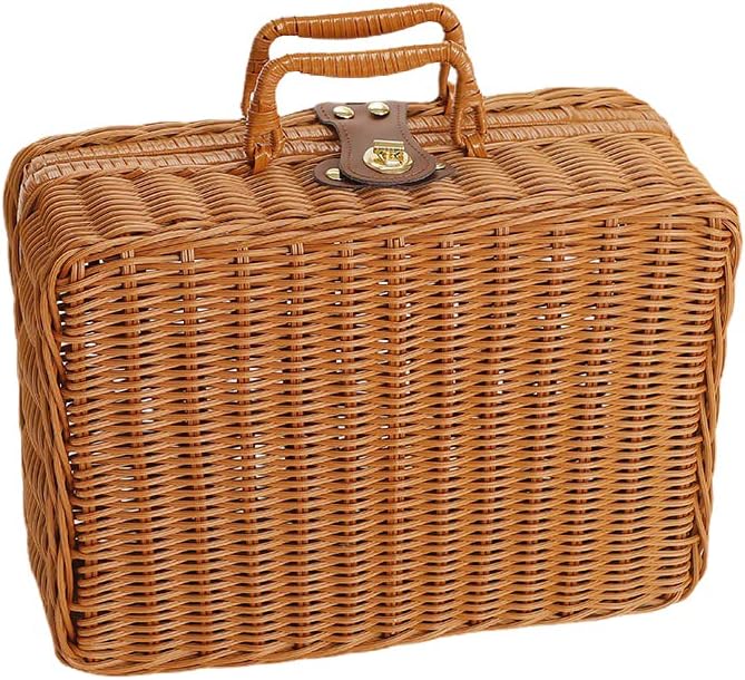 Tomotato Gewebte Picknickbox, Kunststoff Rattan Koffer Picknickkorb mit Griffen und Metallschloss fü