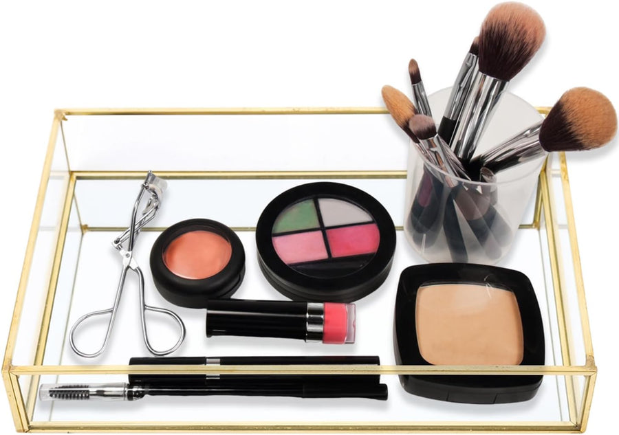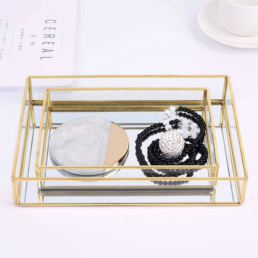 Tomotato Gold Spiegeltablett, Vintage Spiegel Tablett Metall Glas Verspiegelt Platte, Schmuck Kosmet