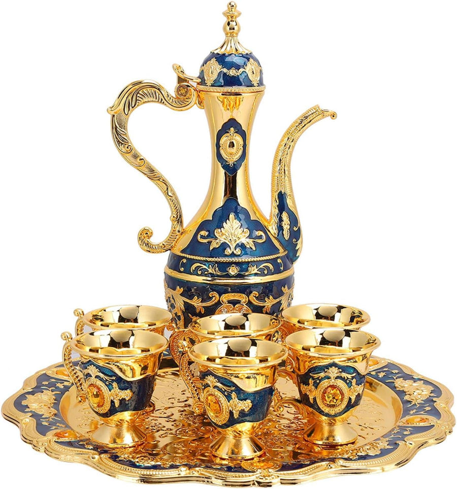 Türkische Kaffeekanne Set, Vintage Türkische Kaffeetasse Set Metall Tee Tasse Kaffeekanne mit 6 Kaff