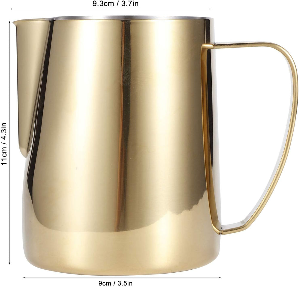 Tomotato Milchschaum Krug, Gold Edelstahl Milchkännchen Aufschäumkännchen mit Spitzer Ausguss Kaffee