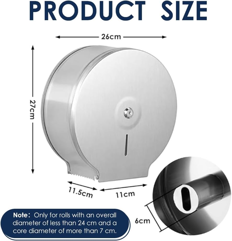Jumbo Toilettenpapierspender, 22,9cm Grosse Rolle Wandmontage Edelstahl Wasserdichter Toilettenpapie