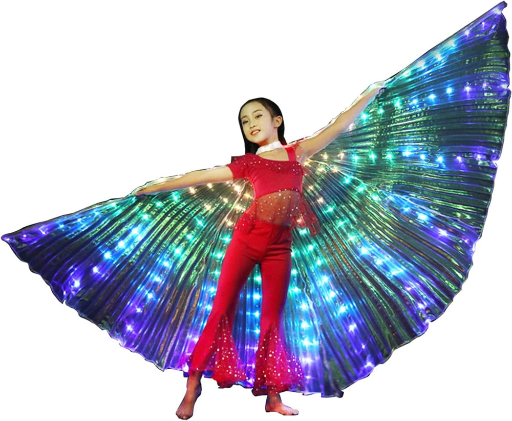 LED Lichter Bauchtanz Isis Flügel, Leuchtende Flügel LED Flügel Bauchtanzflügel mit Teleskopstab, Le