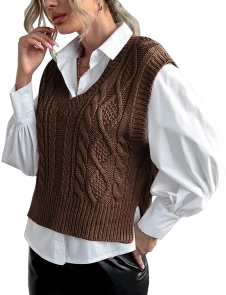 Tongmingyun Pullunder Damen Ärmellos V-Ausschnitt Strick Pullover Basic Strickweste Einfarbig Tank T