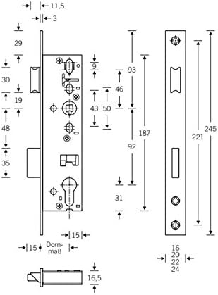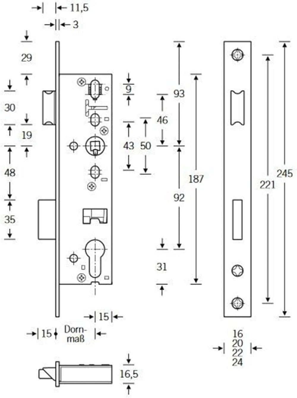ToniTec Rohrrahmenschloss Einsteckschloss 8/92 24mm Stulp Edelstahl, 25 30 35 40 45 mm Dornmass 40mm