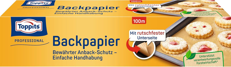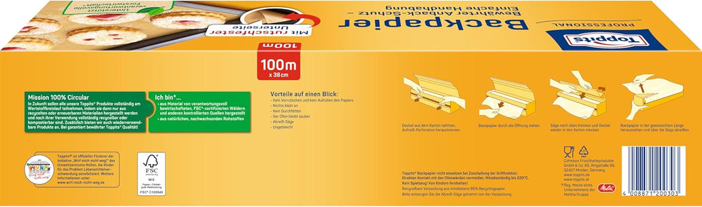 Toppits Backpapier - 1 x 100 m Rolle, Antihaft, mit Abreiss-Säge, Rutschfest, FSC zertifiziert, Idea