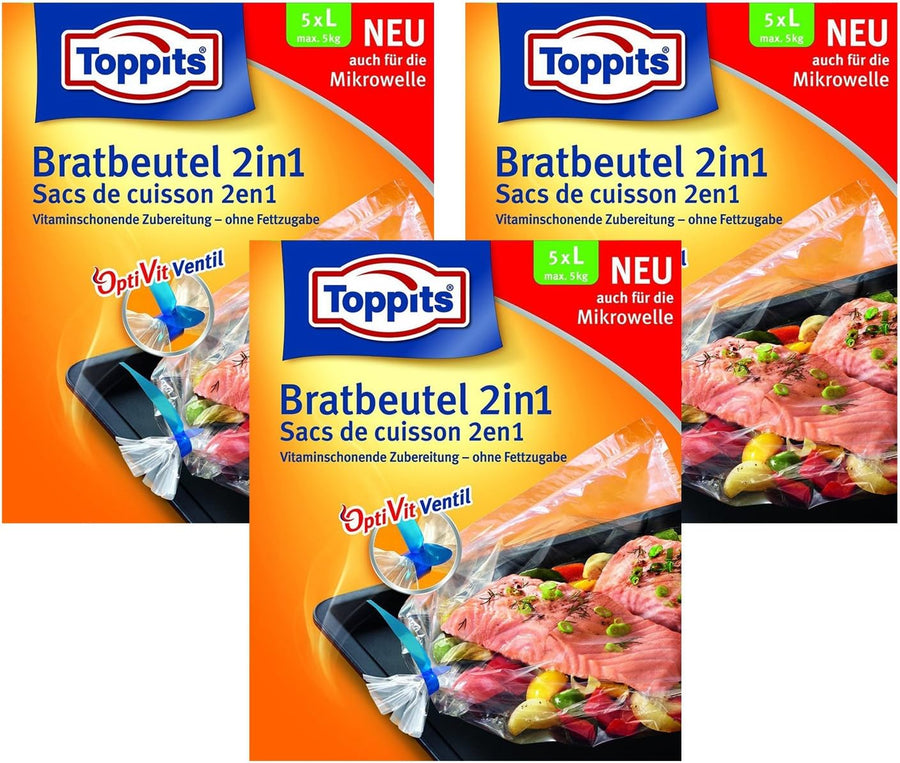 Toppits Bratbeutel 2in1 Large (35 x 43cm), 3er Pack (3 x 5 Beutel)
