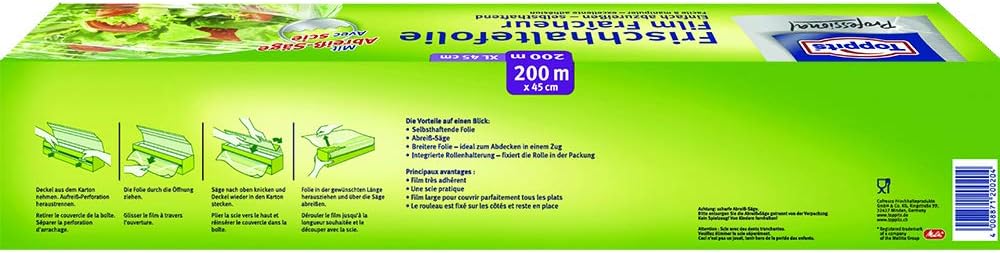 Toppits Frischhaltefolie 200 m in 45 cm Breite, 1er Pack (1 x 1 Stück) XL, inkl. Abreishilfe