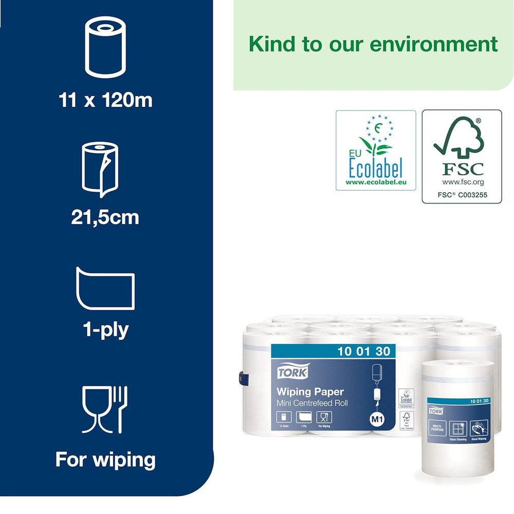 Tork 100130 Mehrzweck Papierwischtücher für das M1 Innenabrollung Mini Spendersystem / 1-lagiges sta