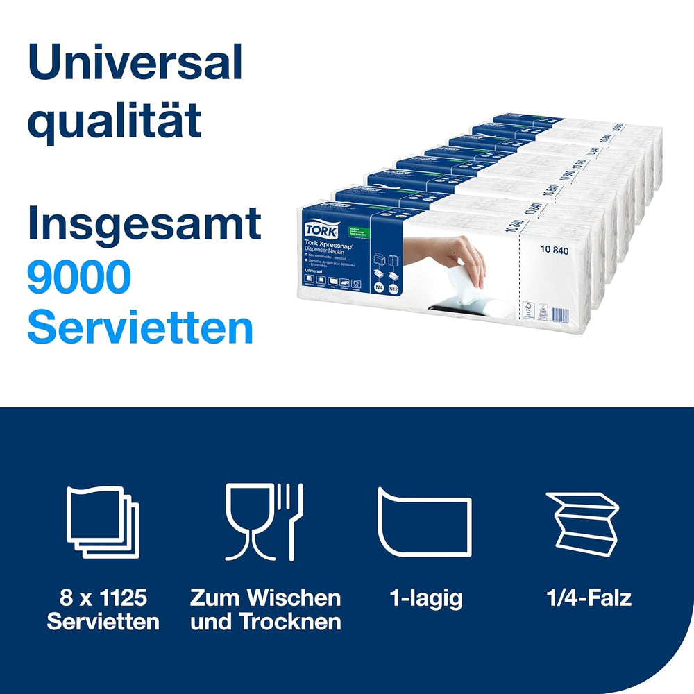 Tork 15850 Xpressnap Extra Soft Spenderserviette unbedruckt / Weisse Papierserviette für Serviettens