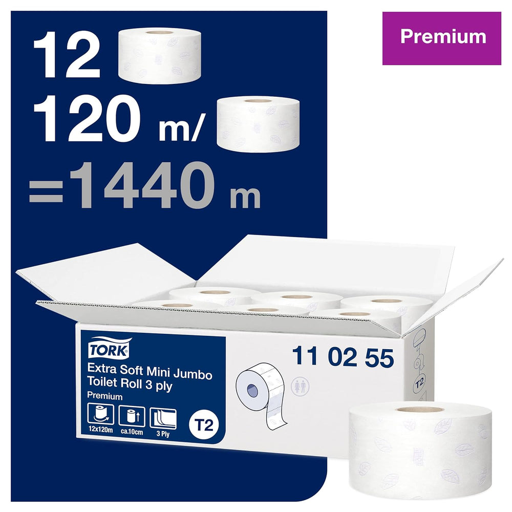 Tork 110255 extra weiches Mini Jumbo Toilettenpapier in Premium Qualität für das Tork T2 Mini Jumbo