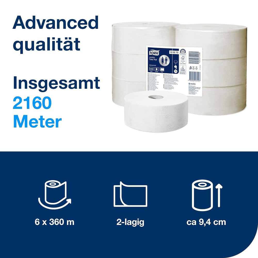 Tork 120272 Jumbo Toilettenpapier in Advanced Qualität für Tork T1 Jumbo Toilettenpapiersysteme / 2-