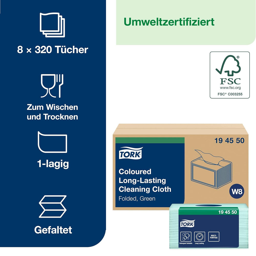 Tork 130060 Extra Starke Mehrzweck Papierwischtücher für W1 Bodenständer- und Wandhalter-System / 2-
