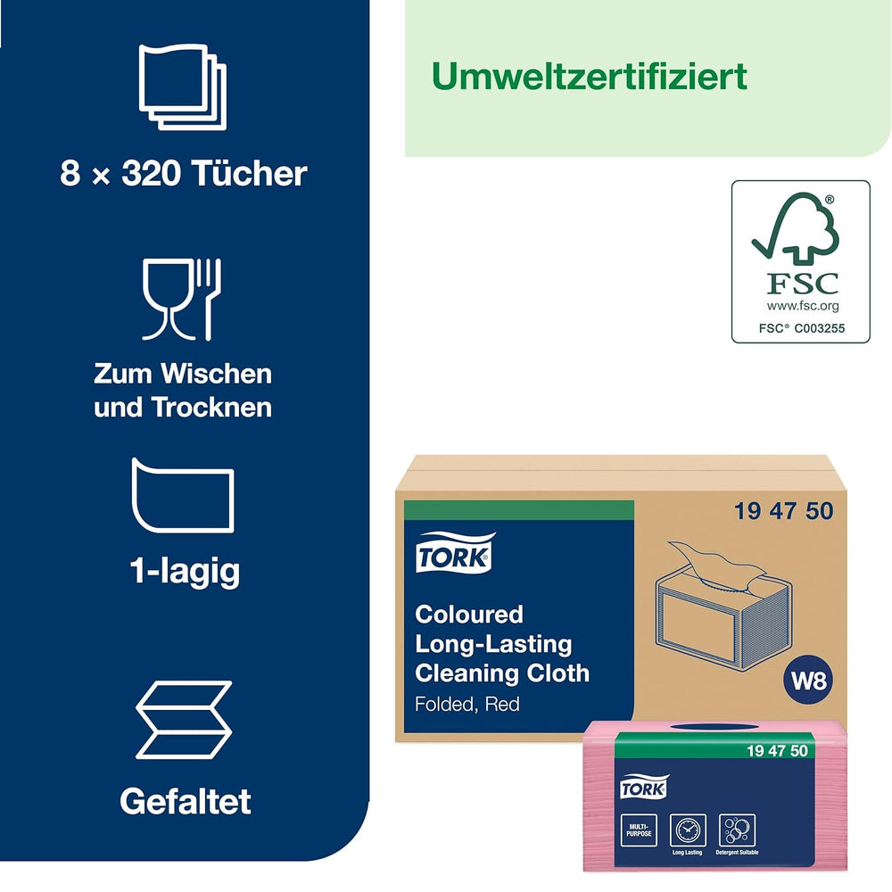 Tork 194550 Langlebige Farbige Reinigungstücher für W8 Small Pack System / 1-lagiges Reinigungstüche