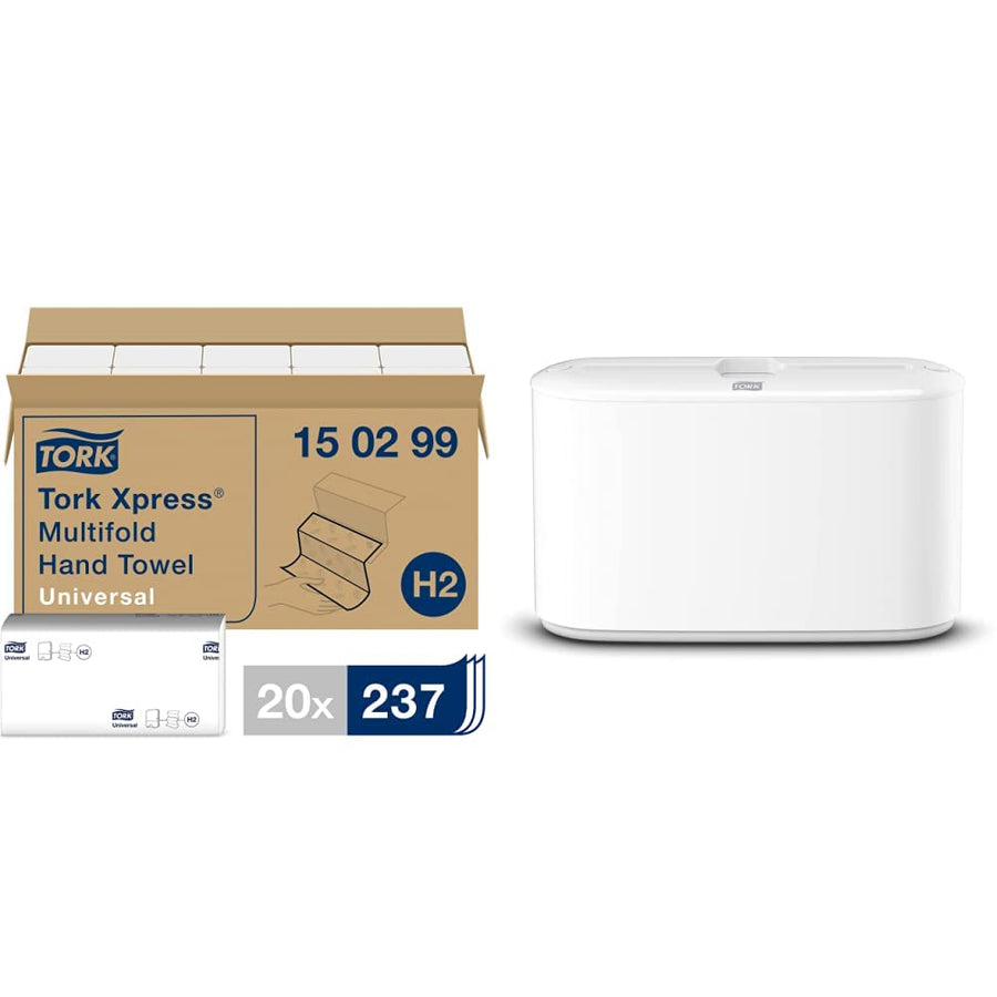 Tork 150299 Xpress Multifold Papierhandtücher H2 Universal in Weiss & Xpress Tischspender für Multif