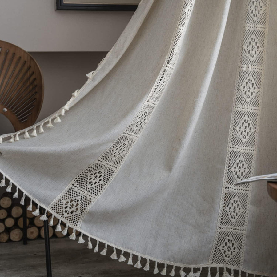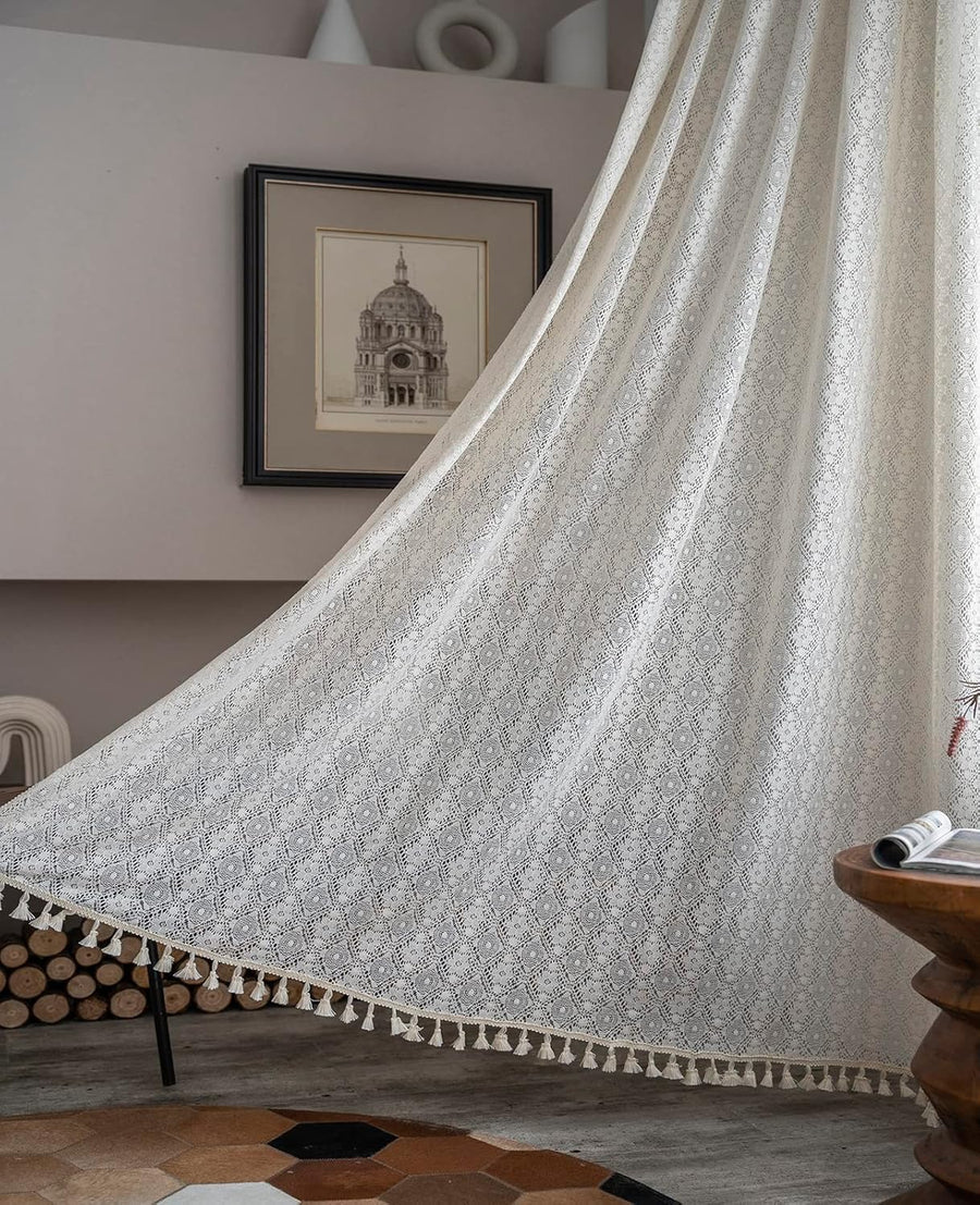 Tospass Vintage Landhausstil Häkeln Stricken Vorhang Boho Bohemien Vorhänge Aushöhlen Quaste 2 Stück