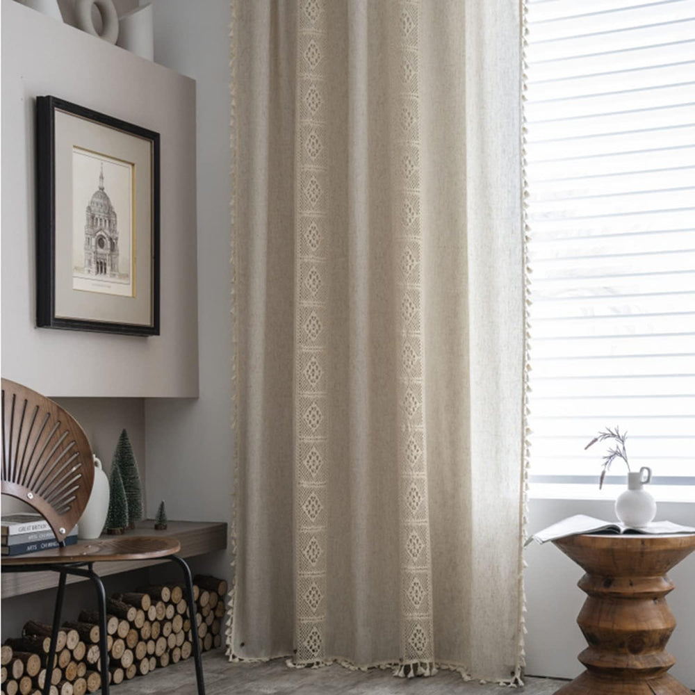 Tospass Vintage Vorhänge Boho Bohemien Vorhang Landhausstil Häkeln Stricken Beige mit Quaste 2er Set